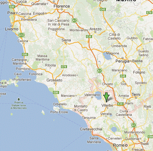 Viterbo is 80 KM north of Rome and is a 90 minute drive from Rome’s Fiumicino airport. There are many daily flights to Rome from the US.